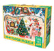 Jill Howarth shows us what Christmas Cheer looks like both above and below ground on a snowy winter day. Above ground, kids and animals frolic in the snow by the tree trunk, which holds the door to below ground where fireplaces warm the room as kids decorate gingerbread cookies and decorate the Christmas tree. Presents are being wrapped and stockings are being hung on the mantle. There is so much lively activity and kids will enjoy piecing this one together.