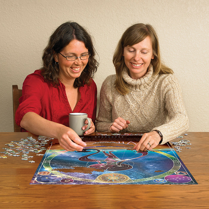 Each 500 piece Zodiac puzzle includes the constellation, symbol, ruling planet, polarity, modes and stones.
